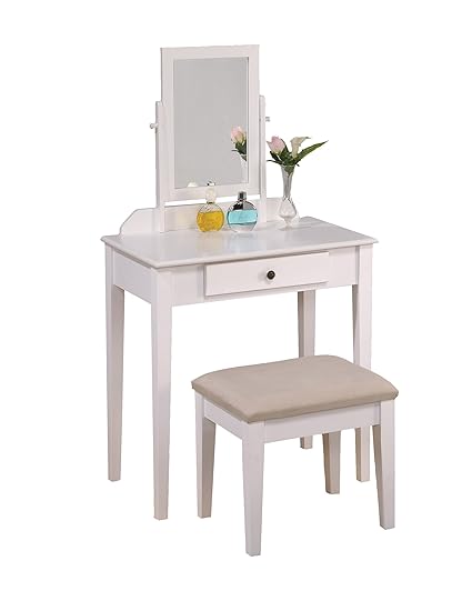 Amazon Com Wood Makeup Vanity Table And Stool Set White Kitchen