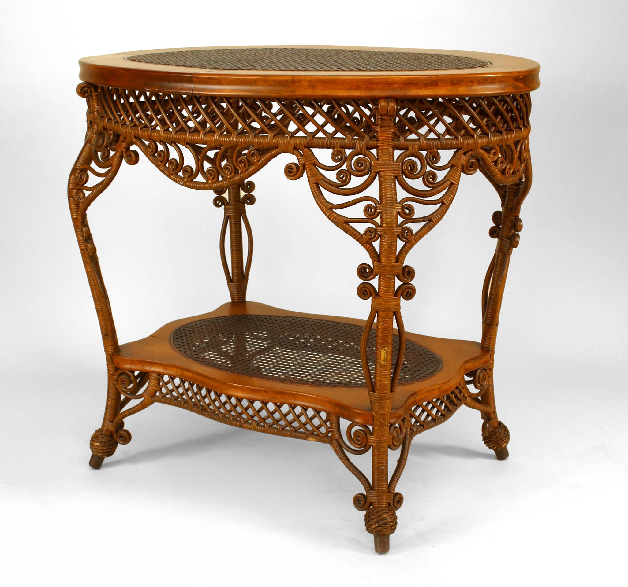 Heywood Wakefield Filigree Wicker Oval Center Table For Sale At 1stdibs