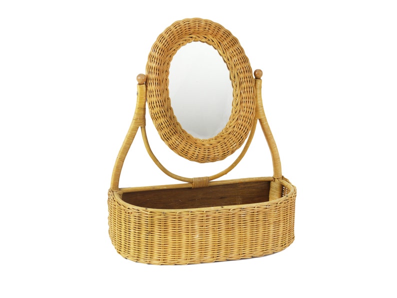 Vintage Wicker Table Top Vanity W Mirror Etsy