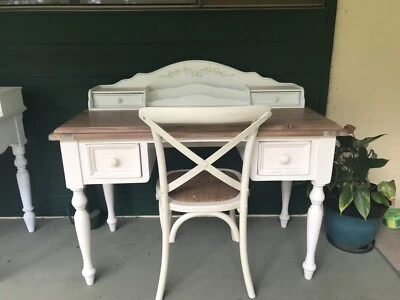 Wicker Rattan Vanity Desk Shabby White Cottage Chic Victorian