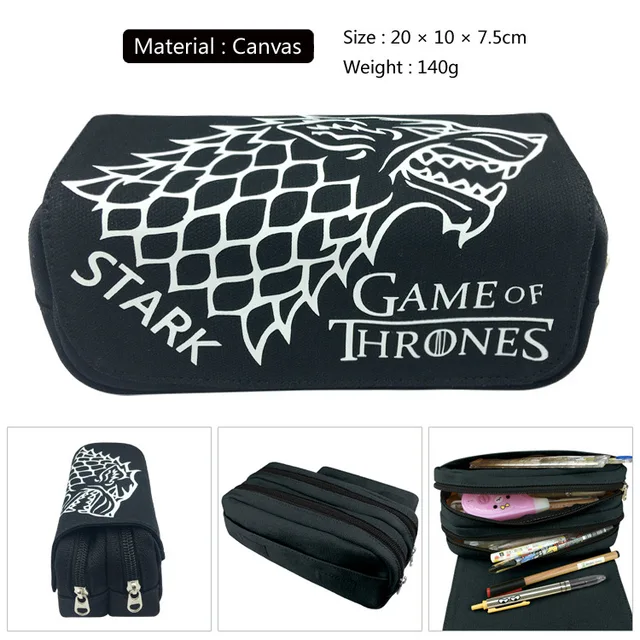 Game Of Thrones Canvas Double Zipper Students Pen Bag Wolf Pencil