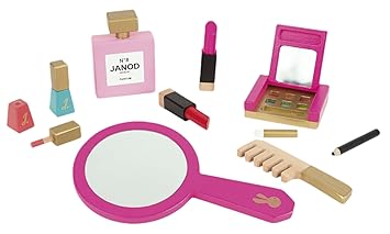 Janod Wooden Toy Makeup Piel Wash Bag Make Up Set Mirror And Comb