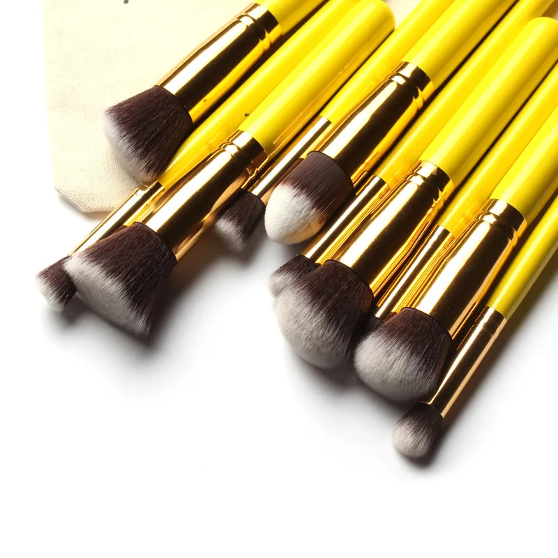 10 Pcs Yellow Professional Makeup Brushes Set Makeup Brushes Kit