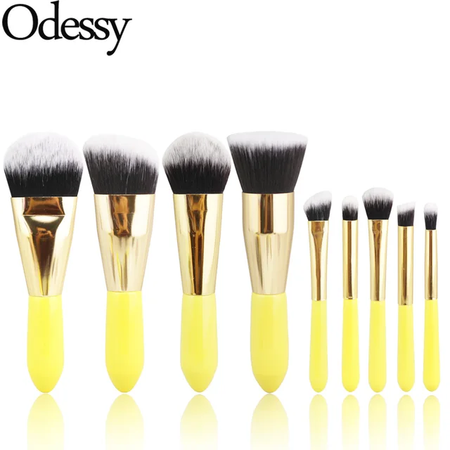 Odessy Pro 9 Pieces Soft Synthetic Hair Makeup Brushes Yellow Wood