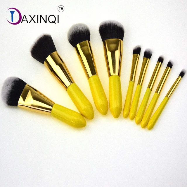 Daxinqi 9pcs Yellow Rose Gold Makeup Brush Set Foundation Eyeshadow