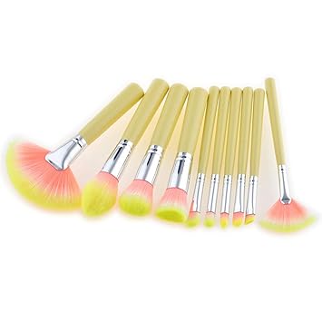 Amazon Com Makeup Brush 10 Pcs Makeup Brushes Set Yellow Wooden