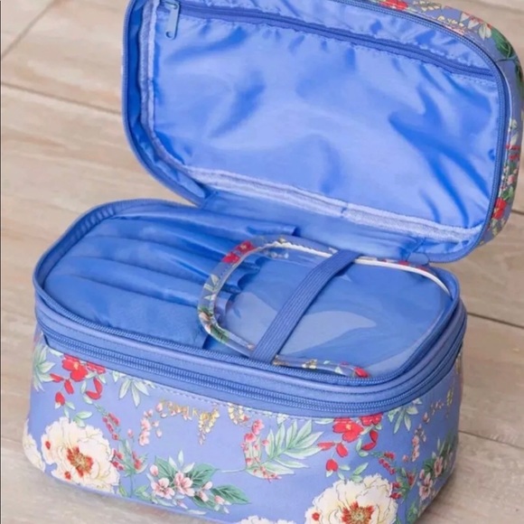 New Yumi Kim Blue Floral Cosmetic Makeup Bag Train Case Great For